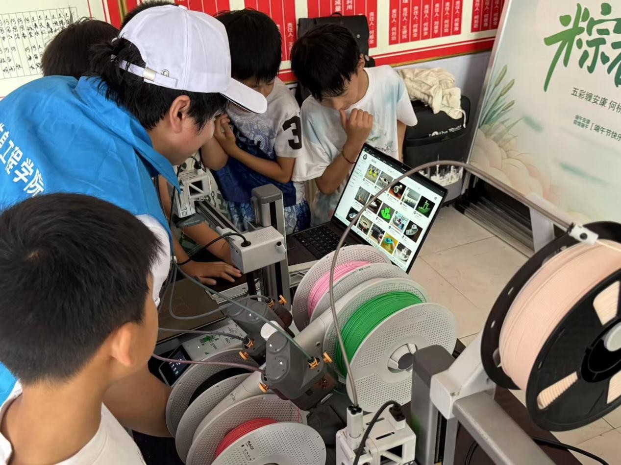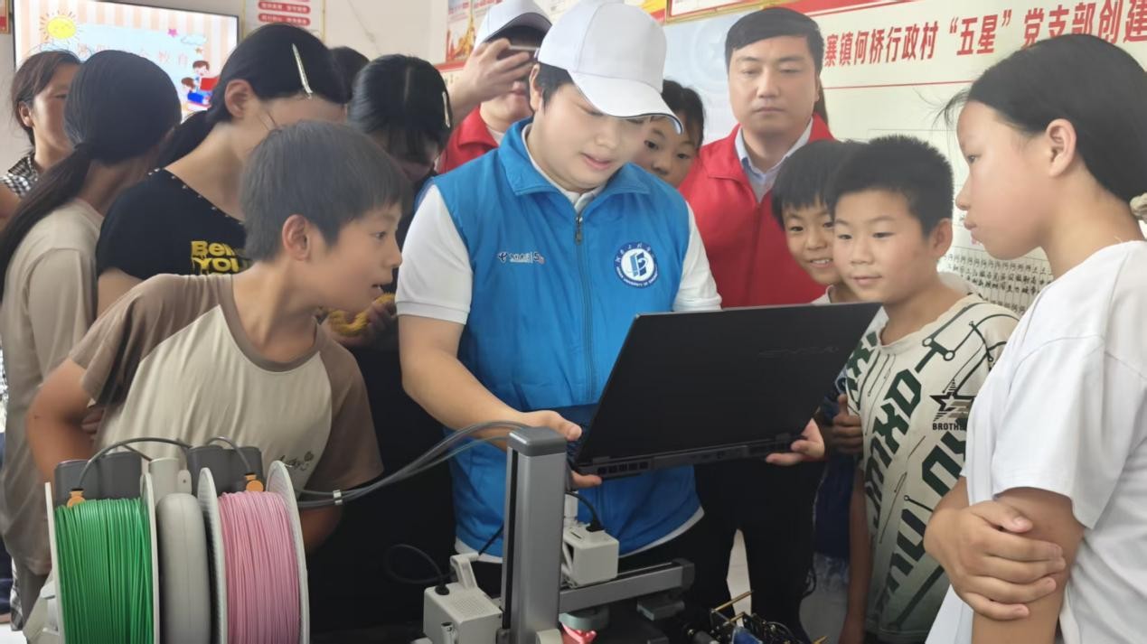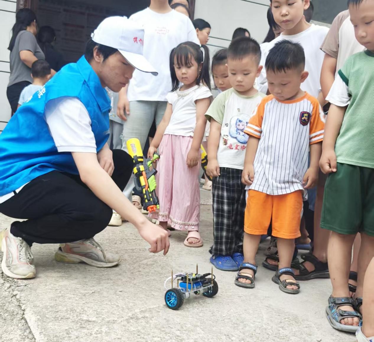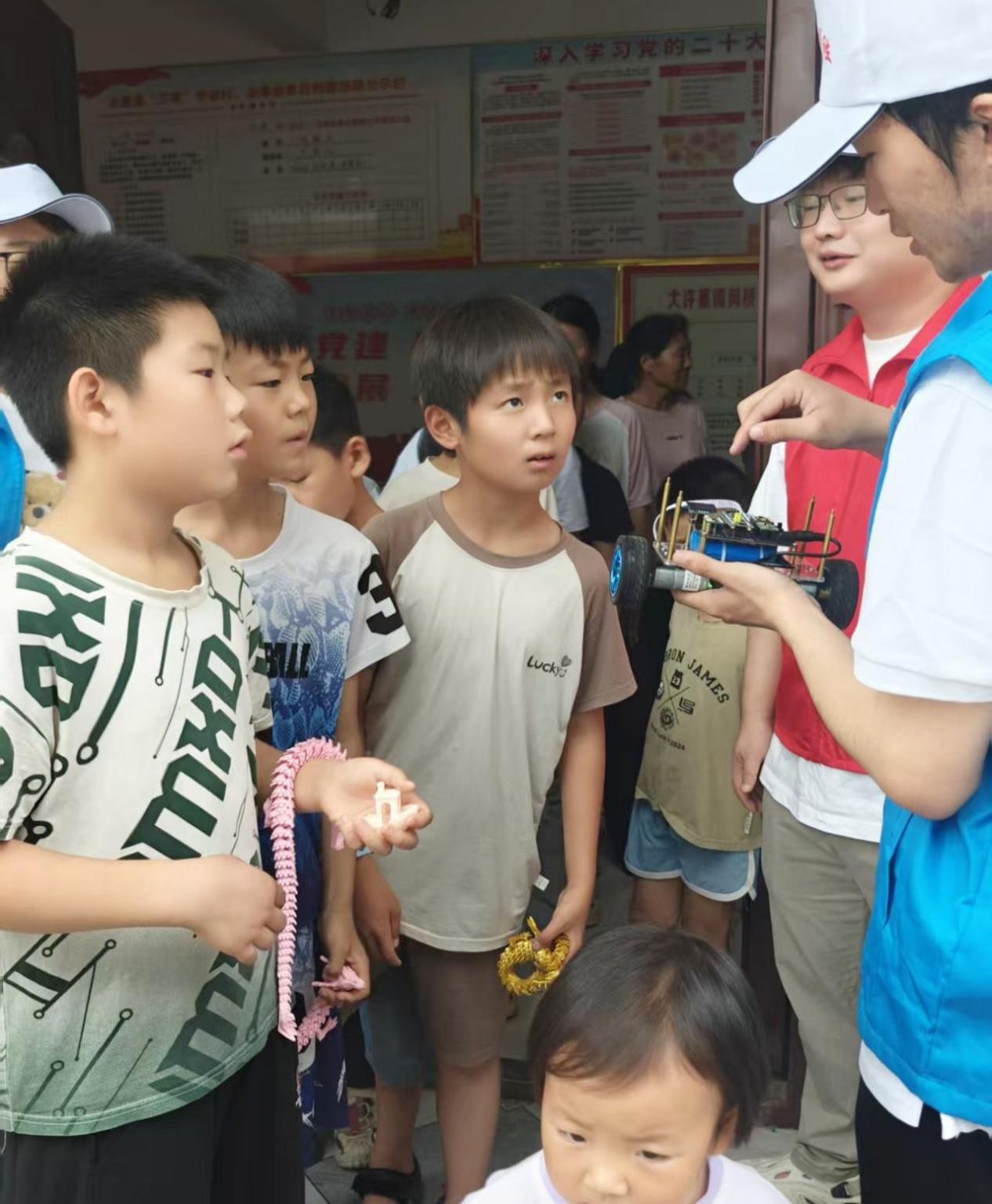 实践团队携带智能小车、3D打印设备等科技教具抵达何桥村。活动现场,志愿者操作智能小车完成避障、循迹等演示,3D打印设备逐层勾勒出精美模型,瞬间吸引孩子们目光。面对充满好奇的孩子们,志愿者用通俗的语言讲解科技原理,从机械运动到3D打印的数字化制造,让抽象知识变得生动有趣,在孩子们心中播撒下科技探索的种子,激发对科学的向往。