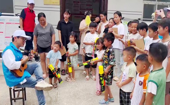 除科技启蒙外,文艺支教成为传递温暖的另一载体。老师和队员们为孩子们带来了欢快的歌曲与优美的舞蹈。在欢快的节奏与旋律中,孩子们释放天性,跟志愿者们学起了舞蹈和老师一起唱歌。用歌声传递快乐,以舞蹈展现活力,文艺互动丰富了乡村孩子精神生活,让艺术之美走进他们的日常。