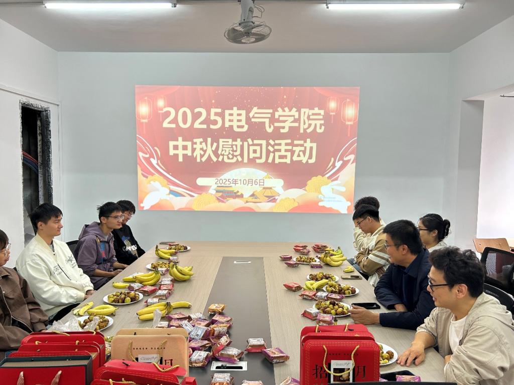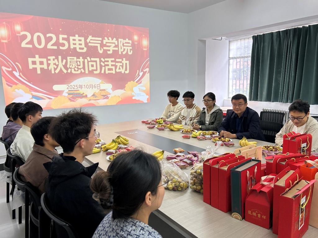 中秋月圆,情暖电气。2025年电气学院中秋慰问活动于A03会议室圆满举行。张帆书记、俞东老师、李琮娴老师与同学们亲切交流、畅谈,并送上节日祝福。欢声笑语中,一份份月饼传递着学院的深切关怀。此次活动让同学们深切感受到电气大家庭的温暖,拉近了师生距离。祝愿电气学子学业进步,前程似锦。