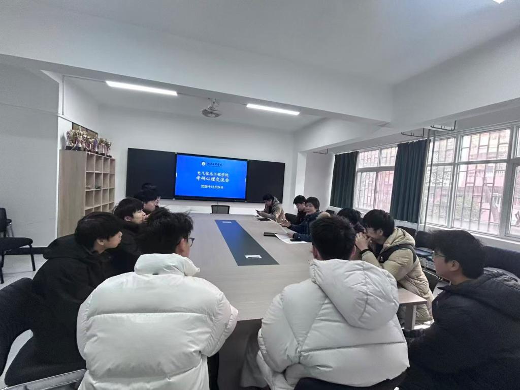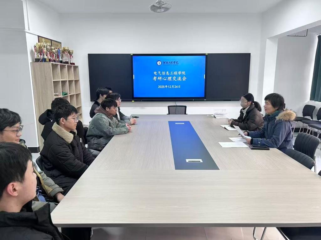 为及时关注考研学子考后心理状态,帮助同学们科学调适心态、理性规划未来,2025年12月24日,电气信息工程学院在A03社区会议室组织召开了2026届考研学生心理座谈会。副书记王丽、毕业班辅导员郭梦真、心理专员程梓涵及部分考研学生代表参加了此次座谈会。