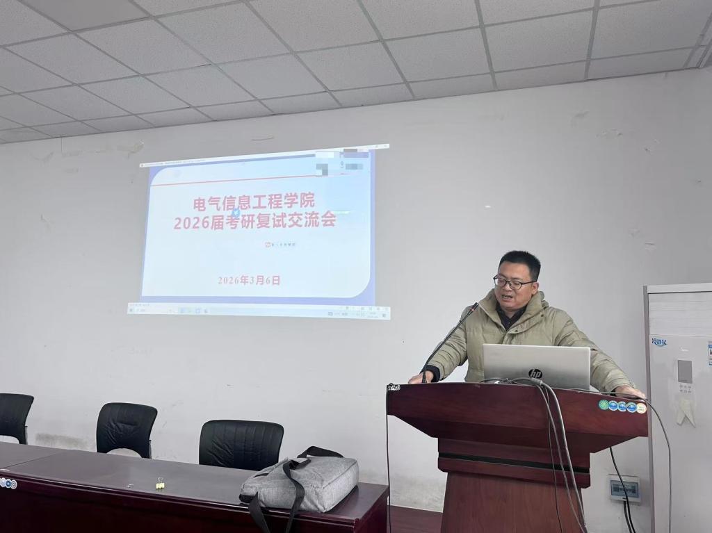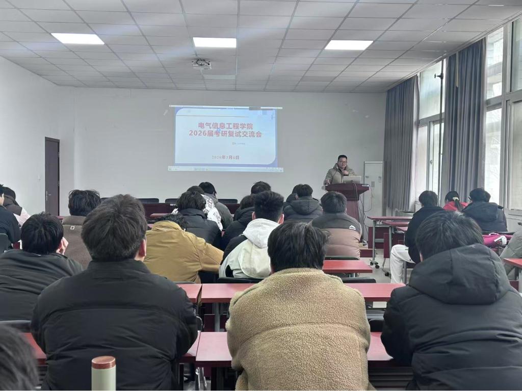 为助力2026届考研学子高效备战复试,提升复试应对能力,电气信息工程学院于2026年3月6日组织召开了考研复试交流会。本次交流会特邀学院郭壮志教授担任主讲,学院相关领导、毕业生辅导员及2026届考研学子共同参与了本次活动。